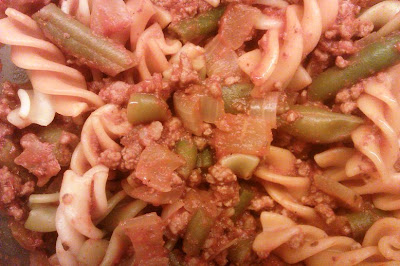 na paetelni rozgrzać łyżkę oleju, wrzucić ziemniaki, podsmażać chwilę, dołożyć fasolkę i dusić kilka minut